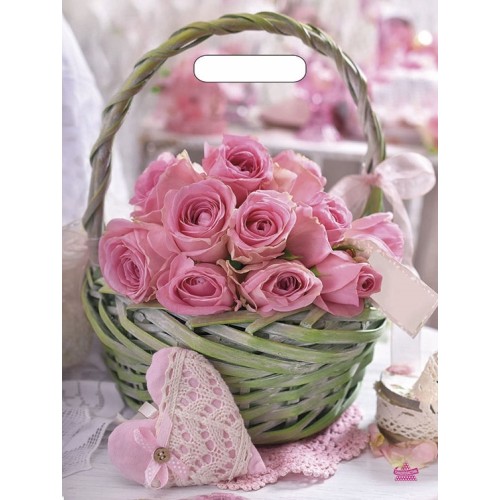 Пакет с вырубной ручкой 31х40 (60 мкм) КОРЗИНА РОЗ (50 штук)