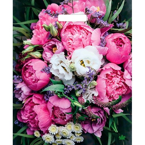 Пакет с вырубной ручкой 38х45+3 (60 мкм) ПИОНЫ (50 штук)