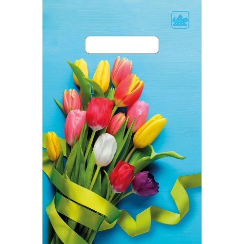 Пакет с вырубной неусиленной ручкой 20х30 (30 мкм) ТЮЛЬПАНЫ НА ГОЛУБОМ (100 штук)